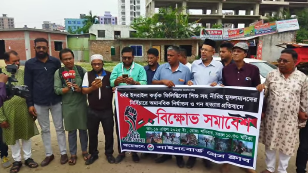 ইজরায়েল আগ্রাসনের বিরুদ্ধে সাইনবোর্ড প্রেস ক্লাবের বিক্ষোভ সমাবেশ